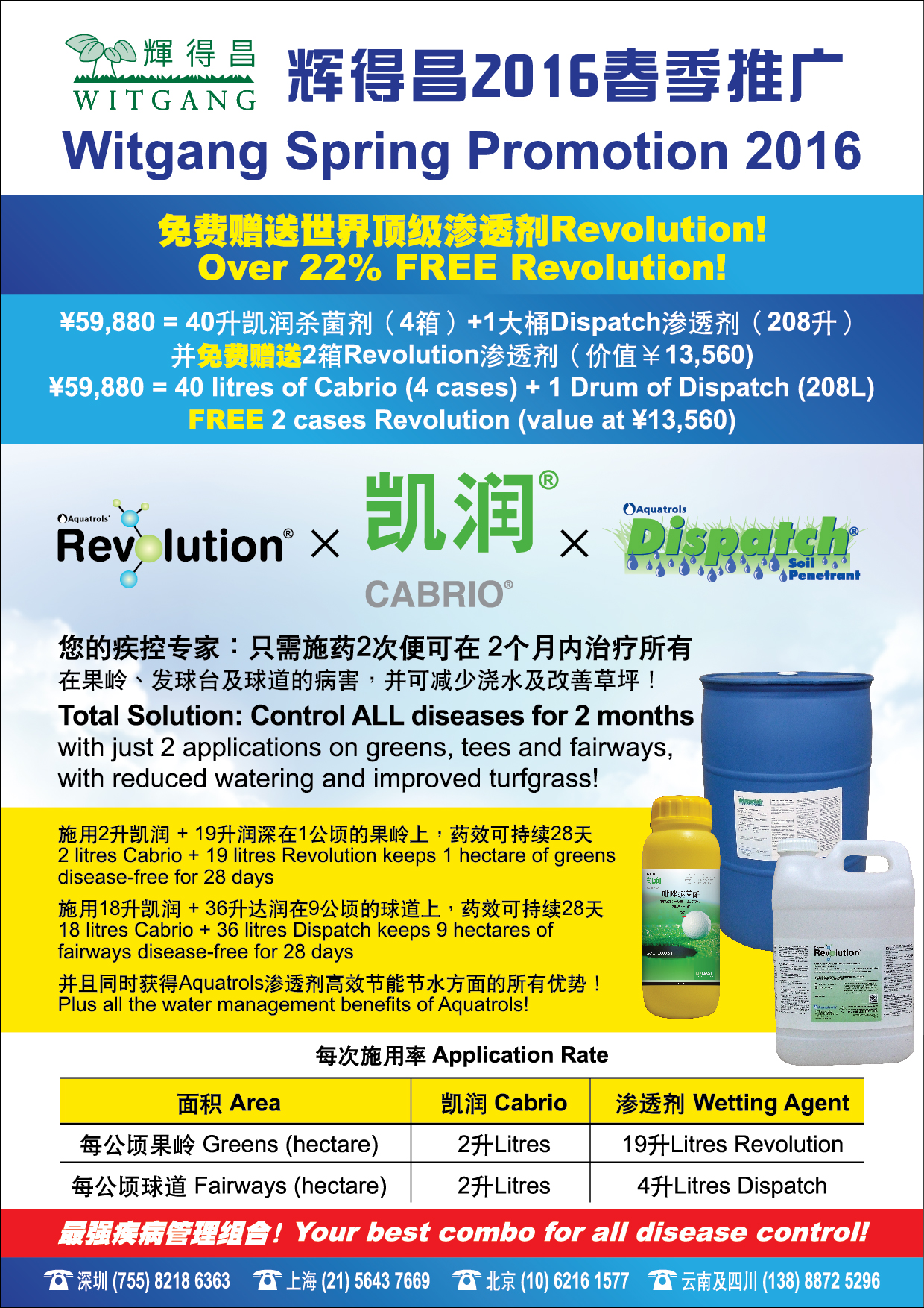 Witgang Spring Promotion 2016 Now available in China: Cabrio (US as Insignia), the world-class wide-spectrum fungicide from BASF. Control the full range of turf diseases for a full 28... [Details] |